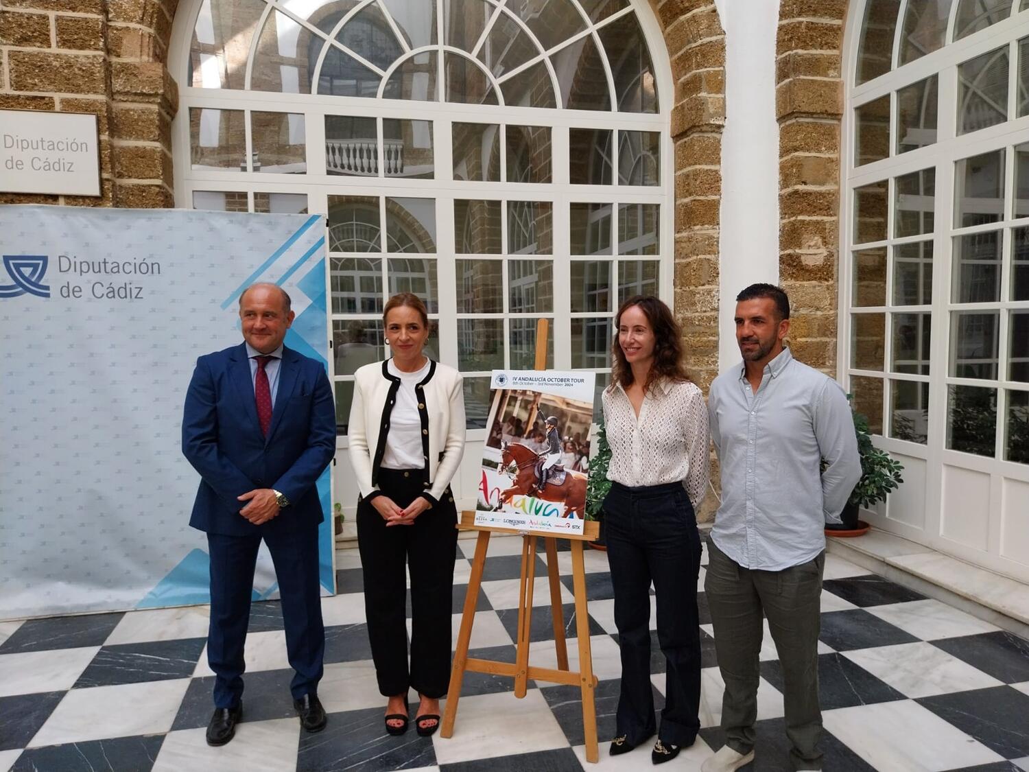 "En primer lugar, quiero dar las gracias a la presidenta de la Diputación, Almudena Martínez, por acoger en el Palacio Provincial la presentación de la cuarta edición del Andalucía October Tour, y al jinete Alejandro Fernández por acompañarnos. Para la gran familia del Andalucía Sunshine Tour siempre es un orgullo presentar un nuevo evento, y en esta ocasión nos complace anunciar el ya conocido Andalucía October Tour, que dará comienzo el próximo martes día 8 de octubre y finalizará el 3 de noviembre, poniendo su broche final con la celebración del Gran Premio Diputación de Cádiz."